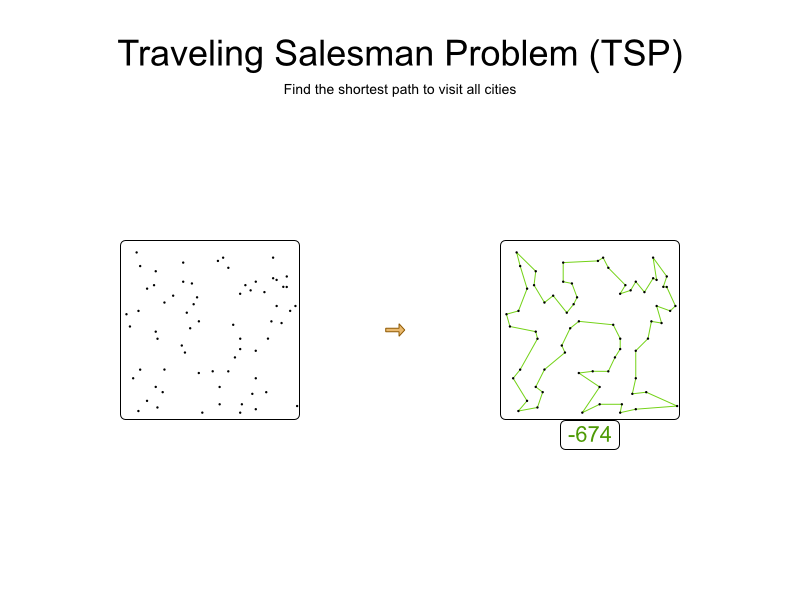 For example, here’s a dataset with 68 cities and its optimal tour with a distance of 674: