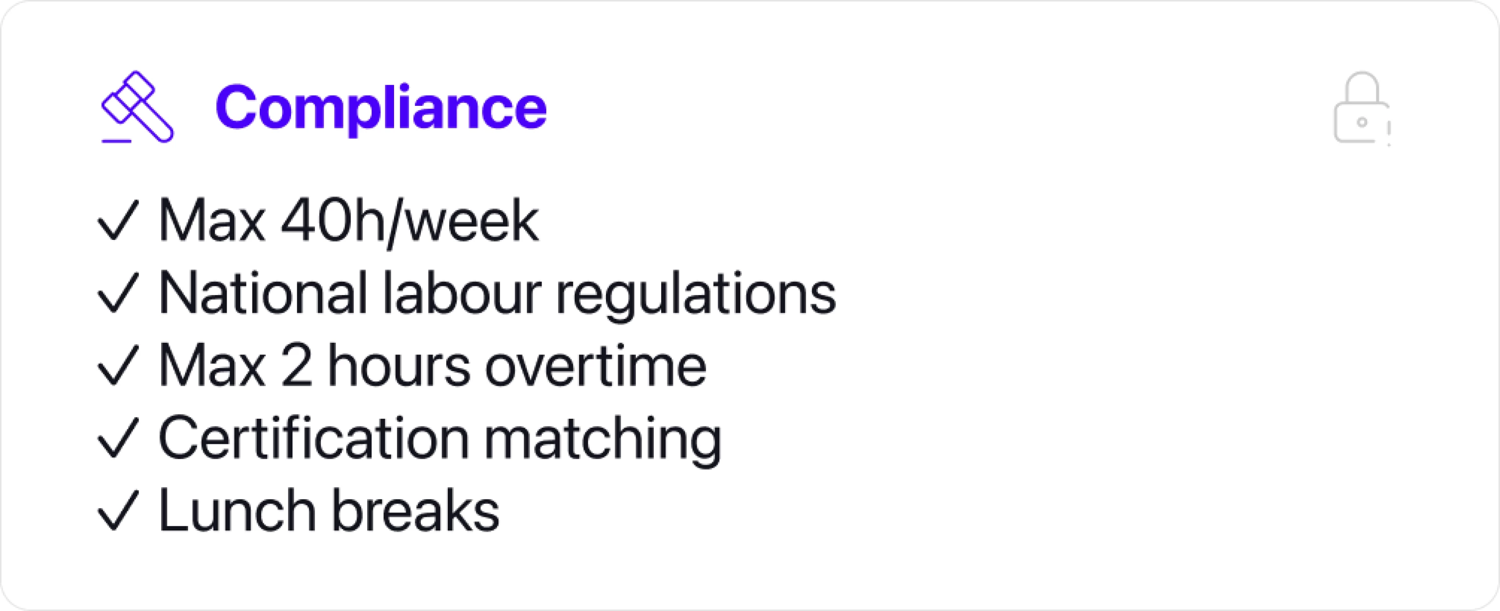 Legal and contractual rules are treated as non-negotiable hard constraints, no matter which region you operate in.