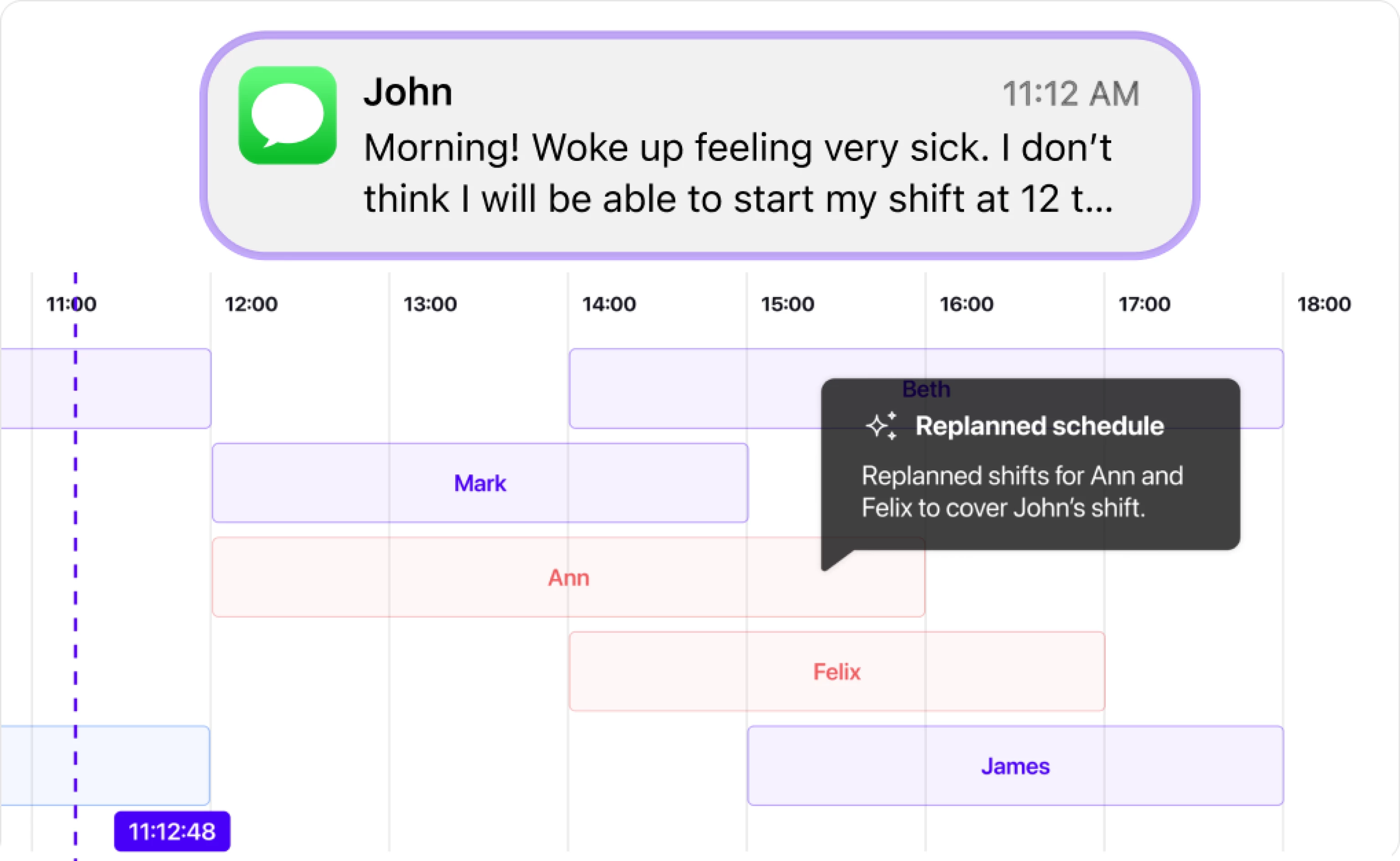 Distribute the intelligent schedules seamlessly within your own application. With real-time re-optimization, PlanningAI ensures schedules always stay up to date.
